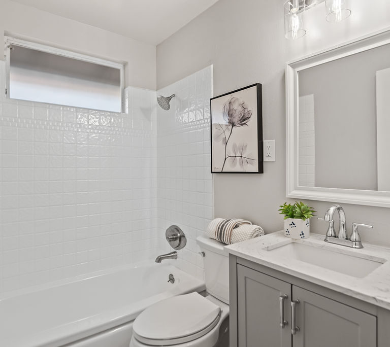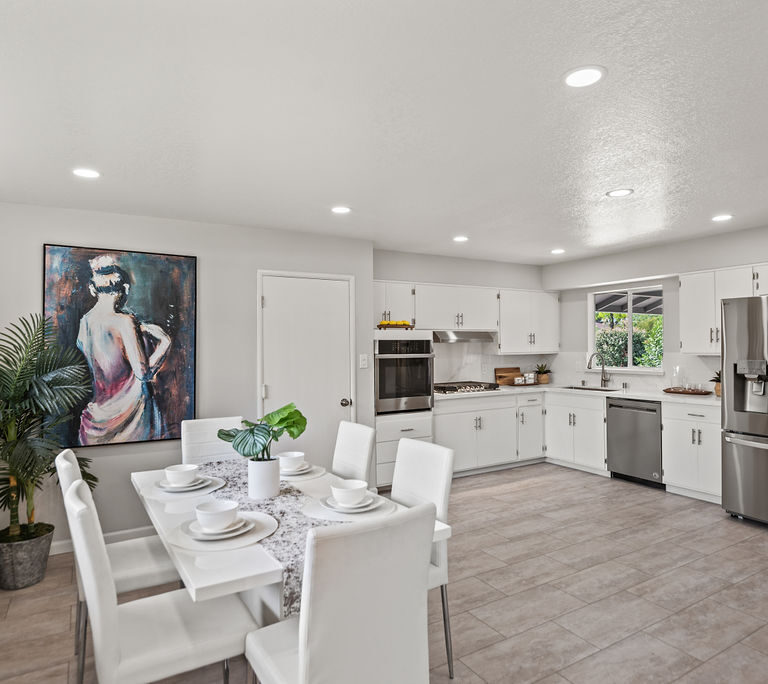 Designed for comfort and functionality, you’ll love the dining area that opens directly to the updated kitchen with fresh white cabinets, quartz countertops with matching backsplash, and stainless steel appliances.